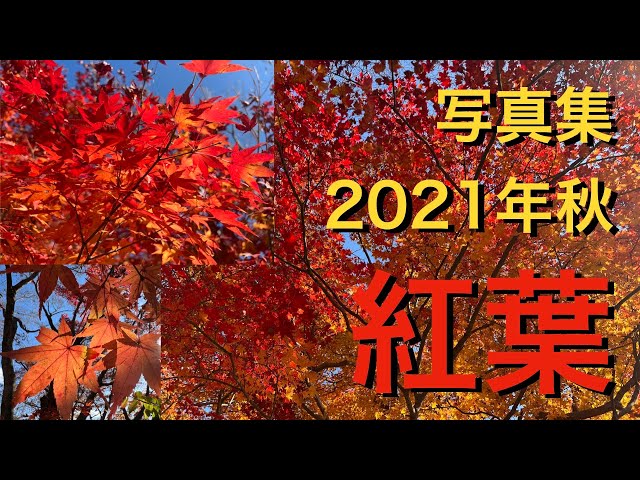 前ボケに真っ赤なモミジを使用したモミジの木(奥に寺院の屋根)